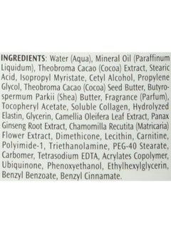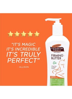 - Combination of cocoa butter, collagen, elastin, and shea butter firms helps improve skin texture